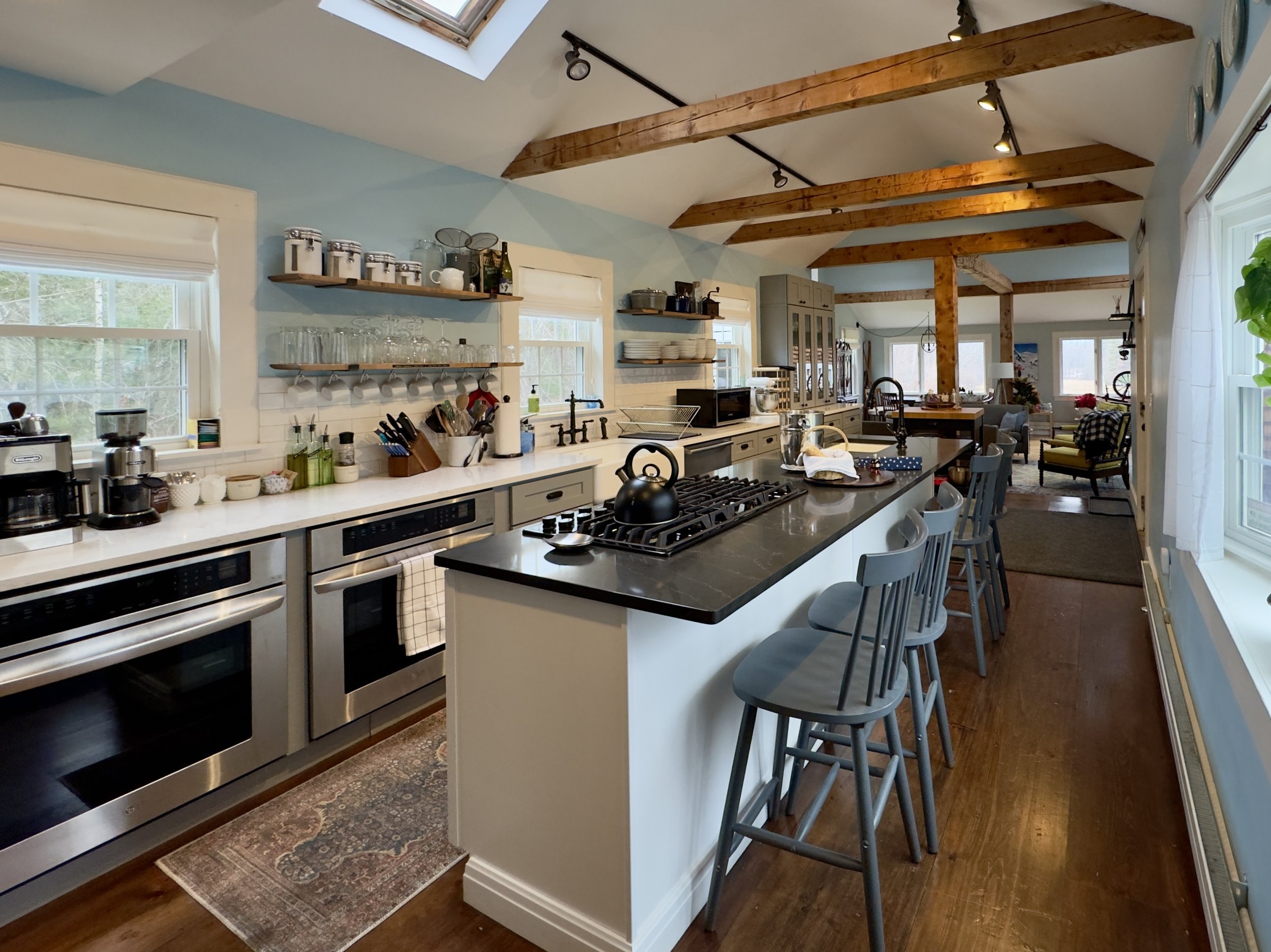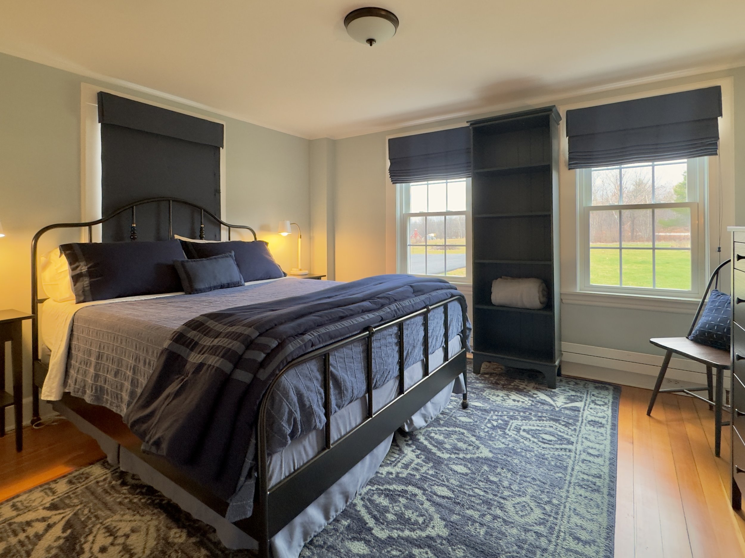 Situated on 22 acres nestled into the side of Crotched Mountain, the New England Cape-Style Farmhouse @ Hedera Farm was originally built in the 1880s from chestnut trees felled right on the property. This fully renovated and modernized house is a cozy retreat any time of year. With a true farmhouse chef’s kitchen and a dining room that can seat up to 18 guests, it’s a great place to entertain as well. Three well-appointed bedrooms, and two full baths make the Farmhouse an excellent family retreat.
