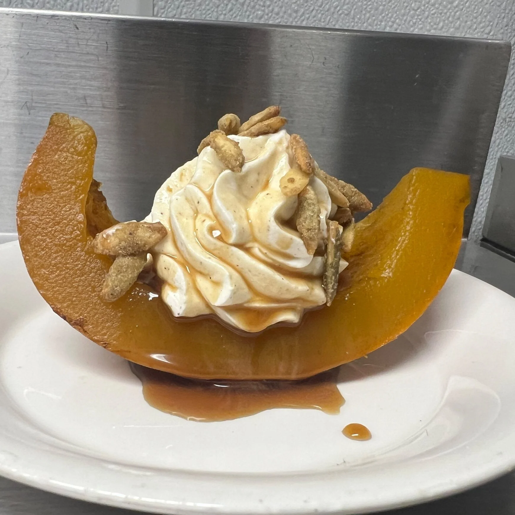 We developed this recipe to celebrate our bumper crop of Koginut Squash. Our twist on the dish—traditionally served during the Mexican celebration of Día de los Muertos, or Day of the Dead—features Spiced Mascarpone-Whipped Cream, a rich Pumpkin Syrup, and Candied Pepitas (pumpkin seeds). Our creamy, sweet Koginut Squash hold up well throughout the braising process, and make this lovely dessert a star of any fall celebration!!