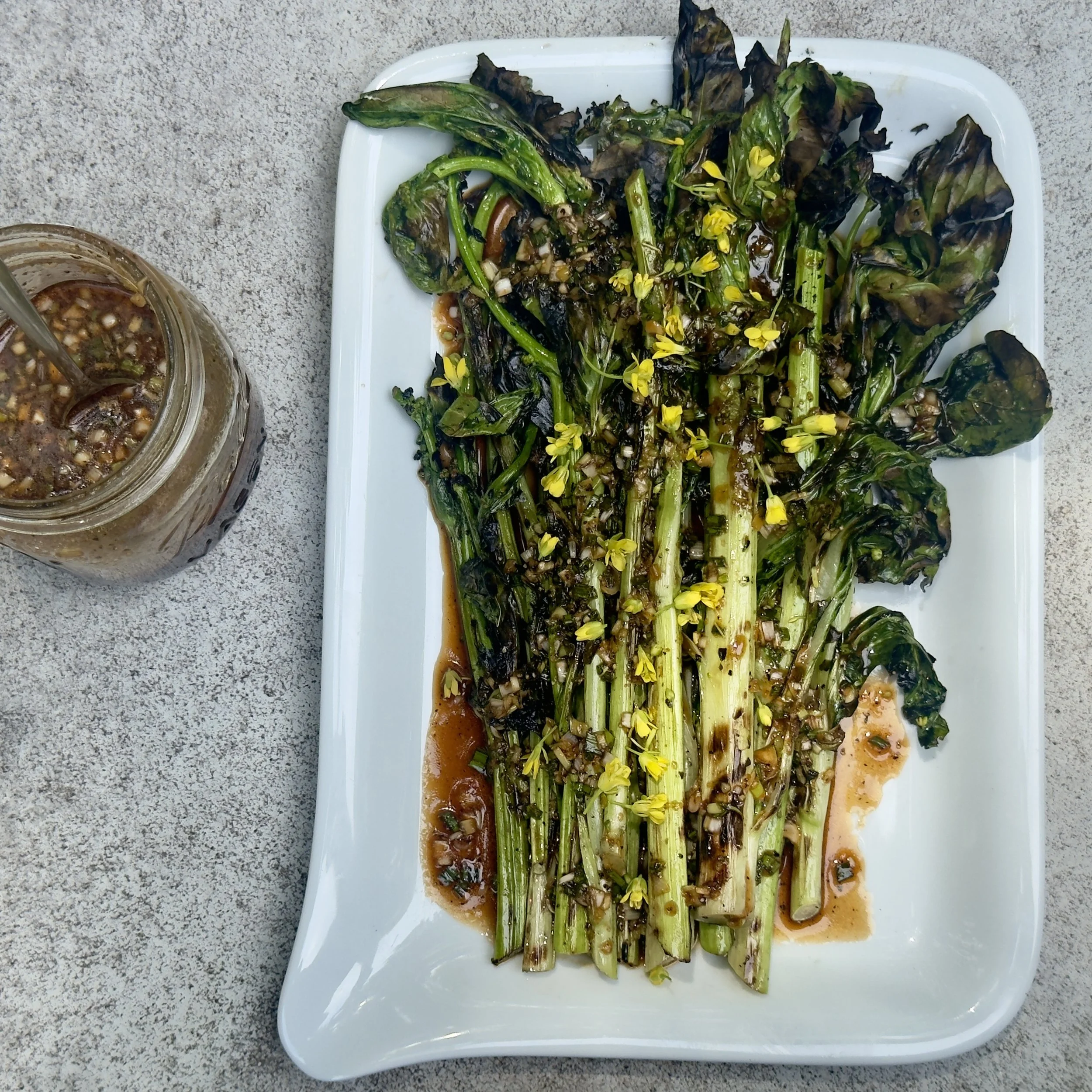 Grilled Pac Choy Rabe w/Scallion Vinegar Sauce