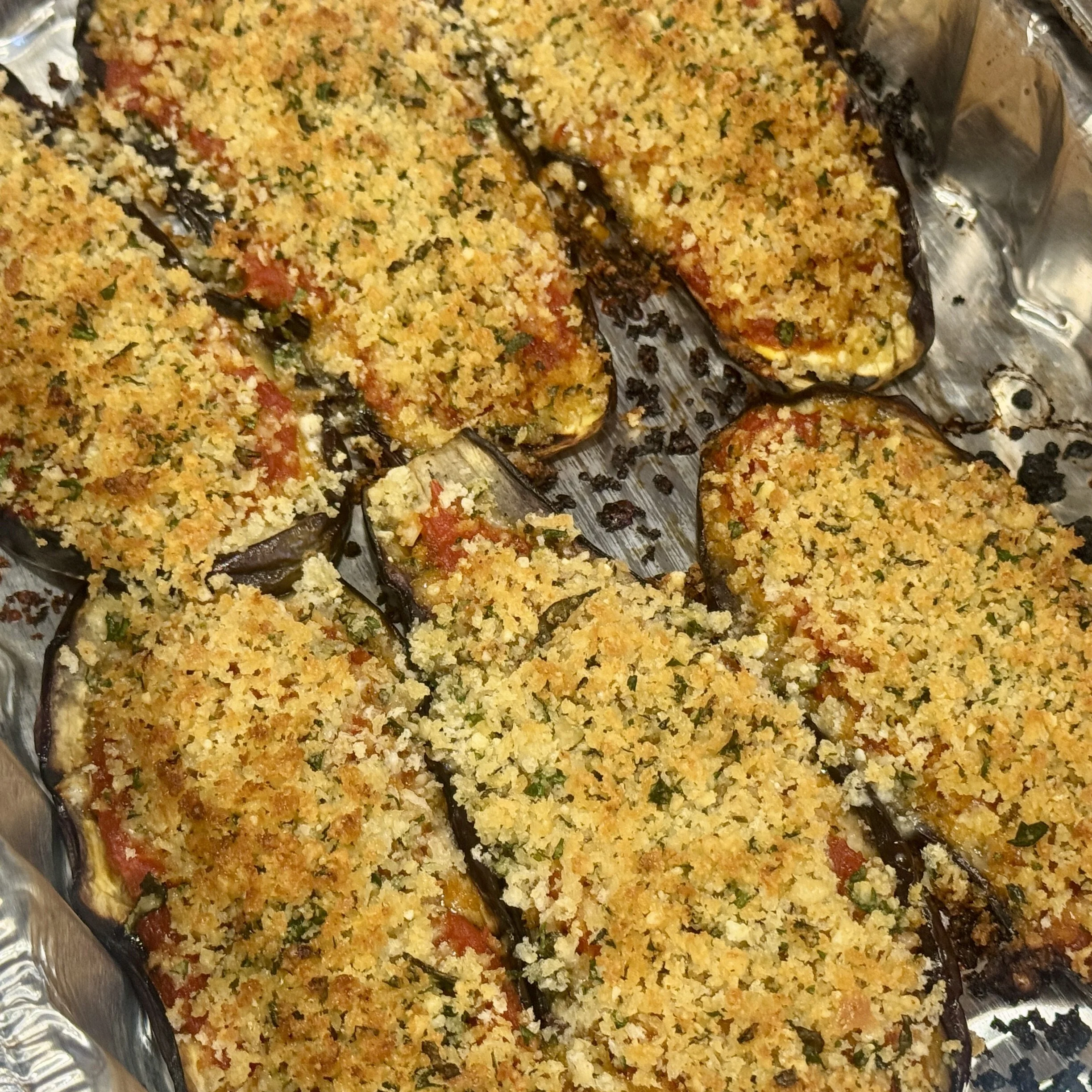 As a vegetarian for much of my adulthood, my Italian mother-in-law, Rosemary, would always make sure there was something on the table for me at every family gathering: Parmigiana di Melanzane. To honor her memory and culinary talents at a recent family memorial lunch, I created my own take on this classic dish featuring grilled eggplant topped with rich tomato sauce and a mixture of breadcrumbs, herbs, and a generous amount of parmesan cheese providing an irresistible crunch and a creamy, smoky finish.